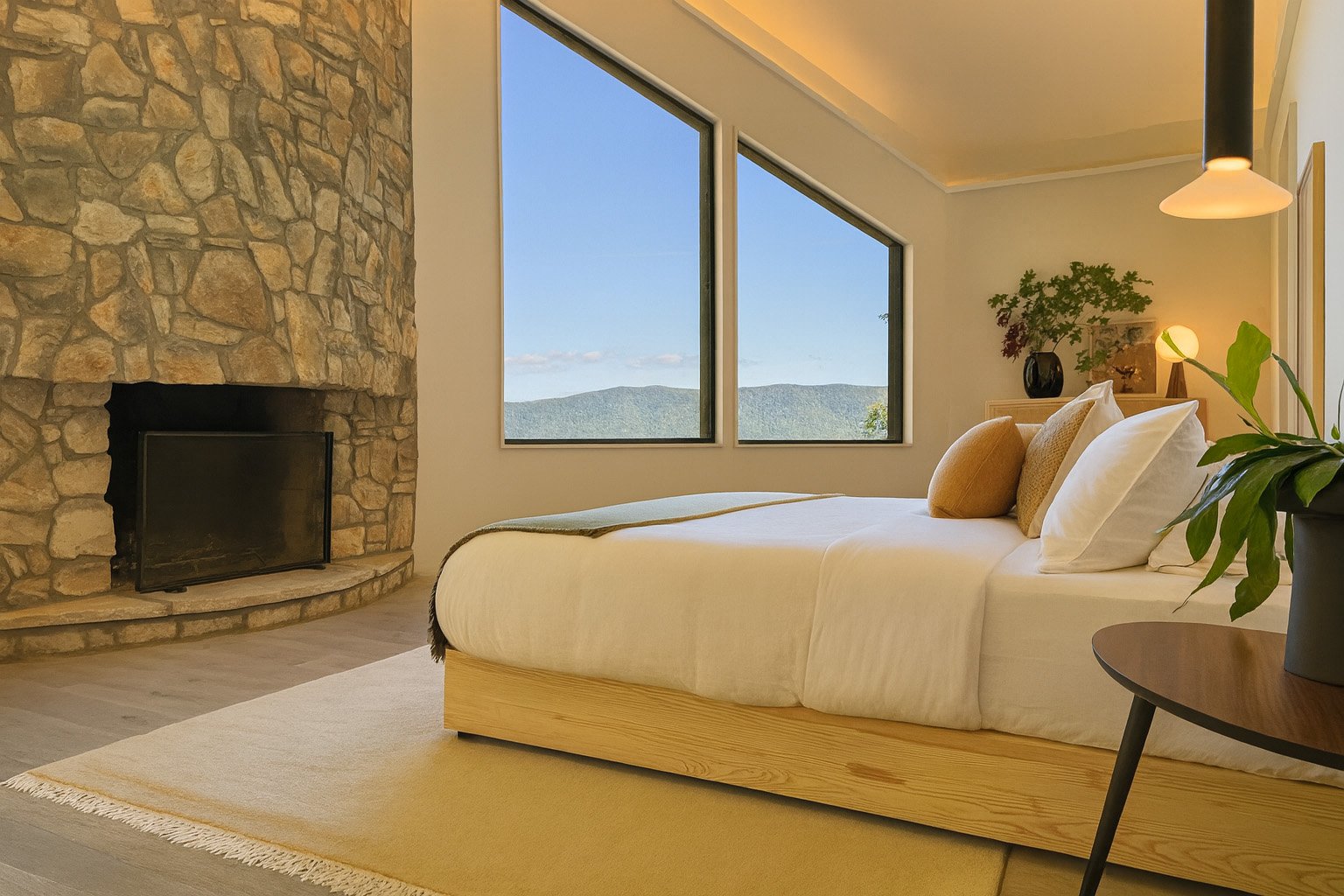 Cozy Woodland Bedroom with Stone Fireplace.jpg